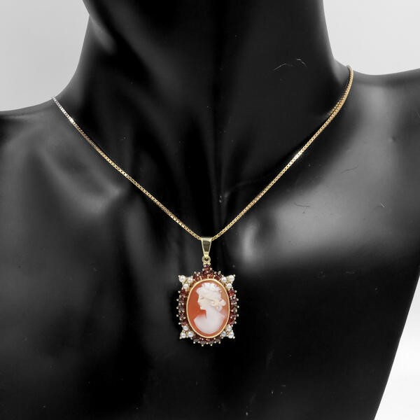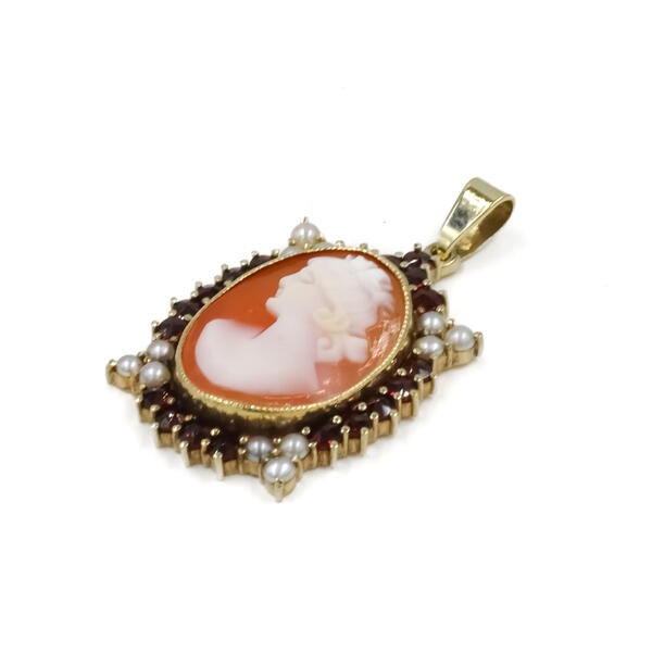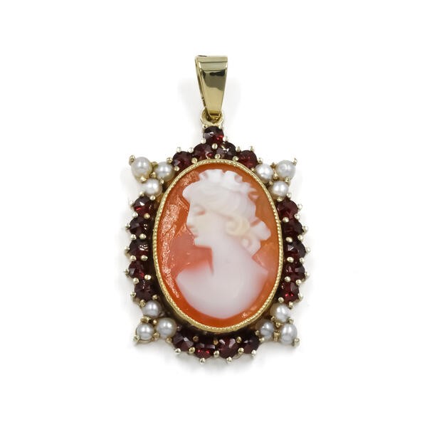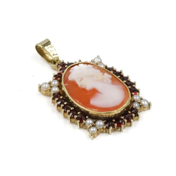 Anhänger mit Gemme und Granaten Barockperlen in 585 Gold für Kette Antik