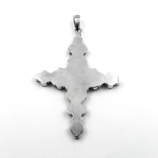 Großer Kreuzanhänger mit Mondsteinen, Perlen und Granaten 925 er Sterlingsilber