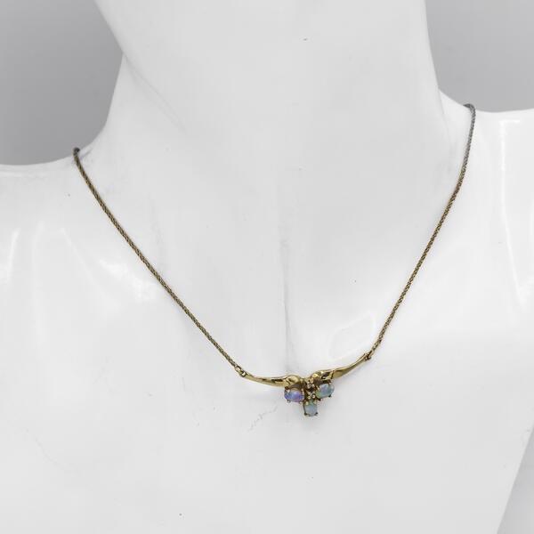 Collier Kette mit Opalen und Diamanten in 14 Kt. 585 Gold 42,5 cm