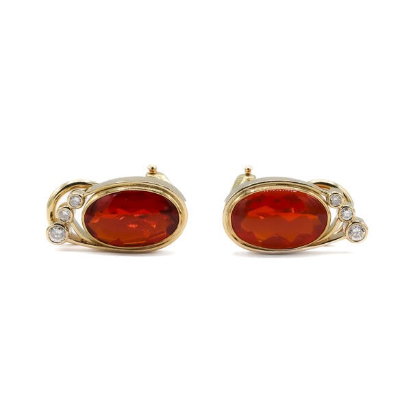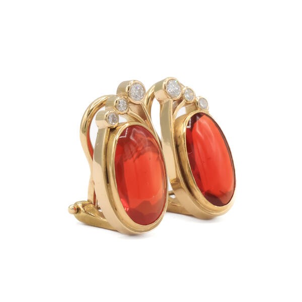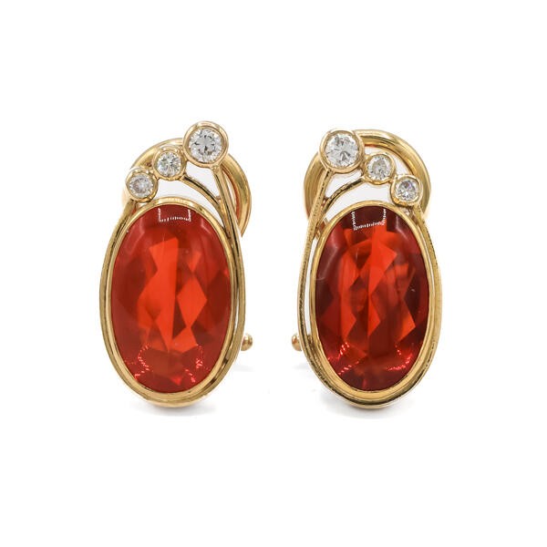 1 Oaar Ohrringe Ohrclips mit Feueropalen und Brillanten in 18 Kt. 750 Gold