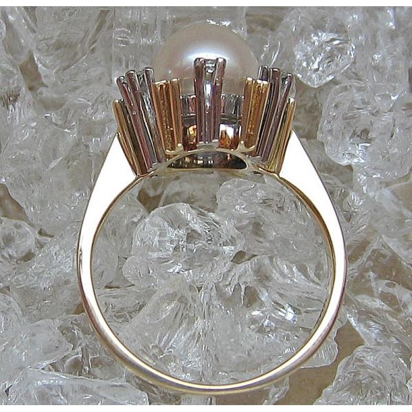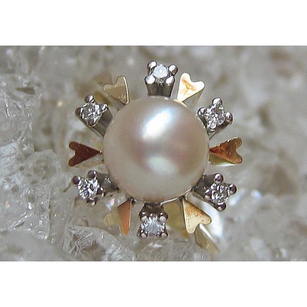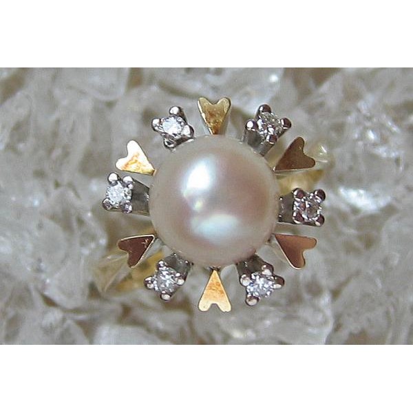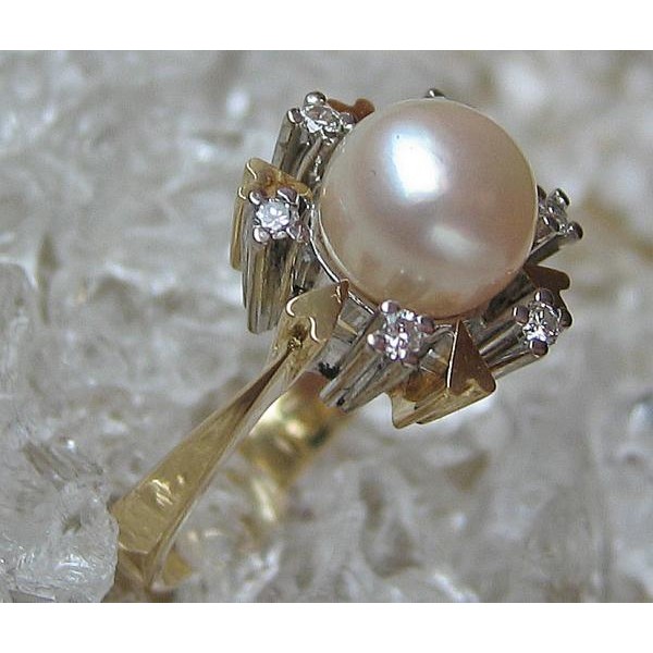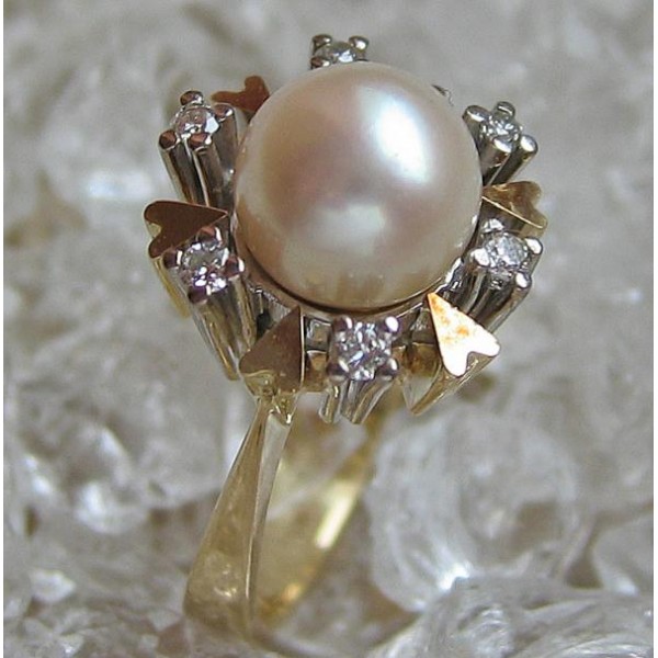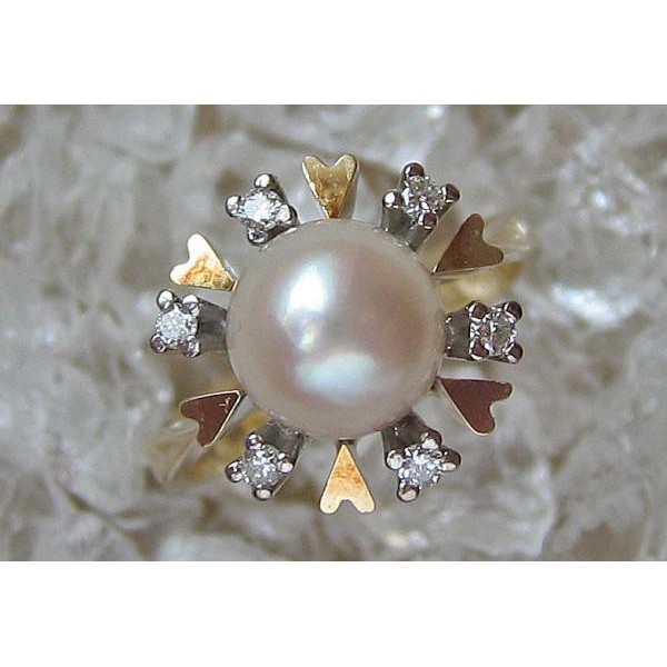 Ring mit Perle Perlen Brillant Diamant in 14 Kt. 585 er Gold 51 top!