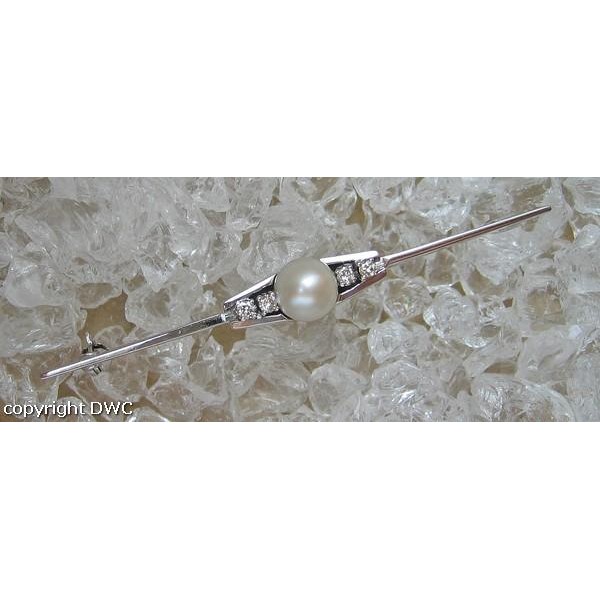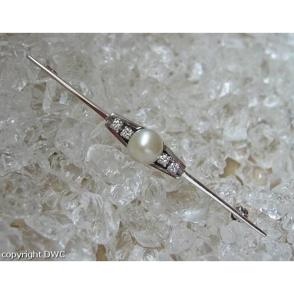 Ansteck Nadel Brosche mit Perle Diamanten in 14 Kt. 585 er Gold