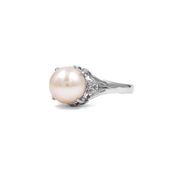 Ring mit Perle und 4 Brillanten Diamanten 0,04 ct. in 900er Platin Gr. 53