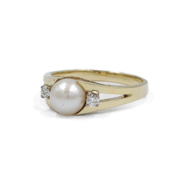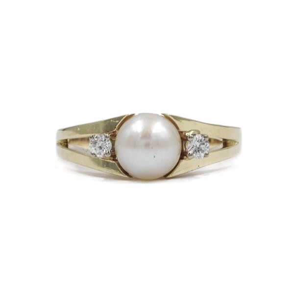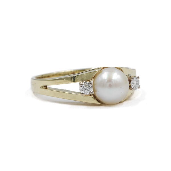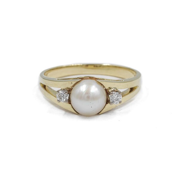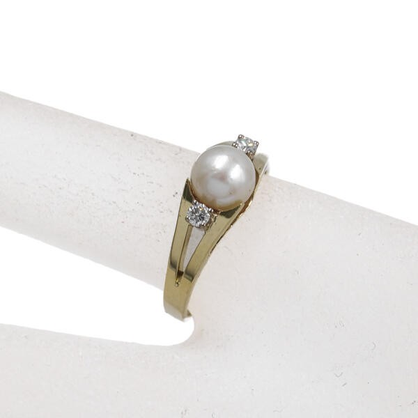 Ring mit Perle und 2 Brillanten Diamanten 0,10 ct. in 14 Kt 585 Gold 54