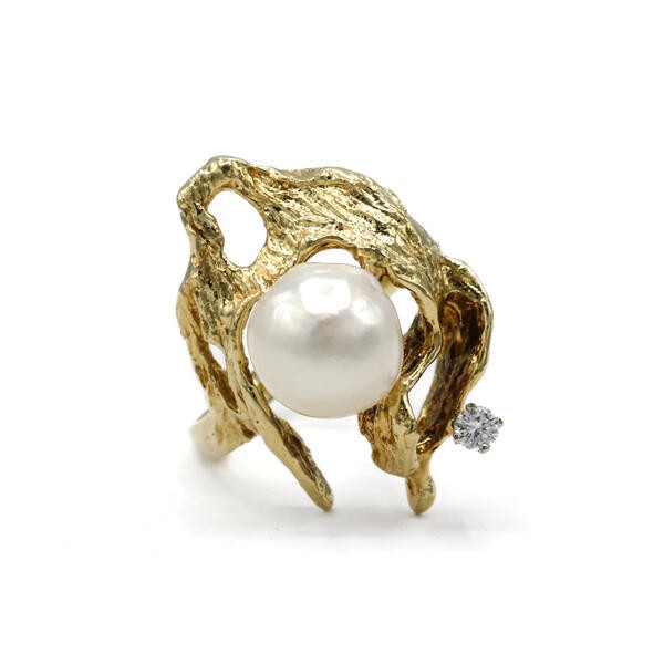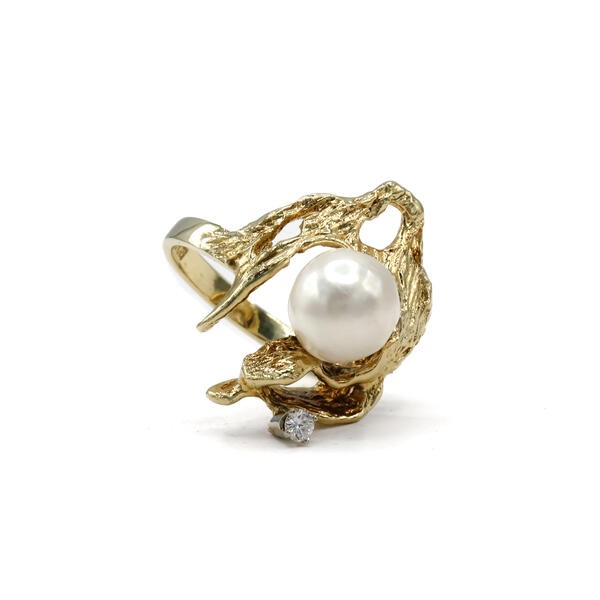 Ring mit Perle und Brillant Diamant 0,07 ct in 14 Kt 585 Gold 55