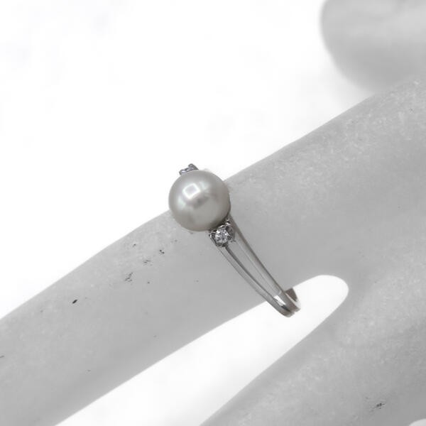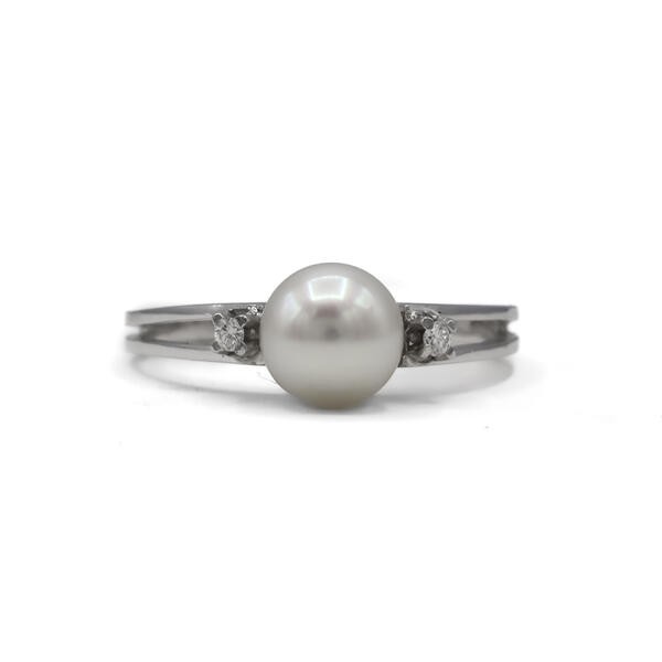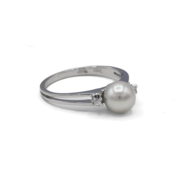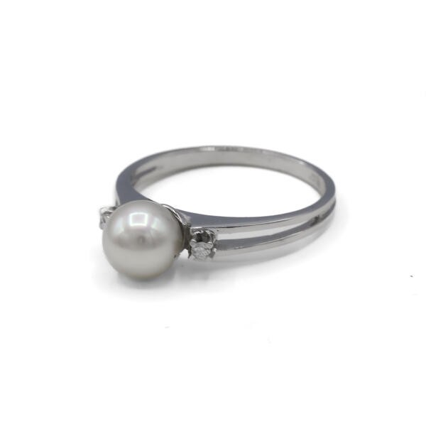 Ring mit Perle und 2 Diamanten 0,02 ct. in 18 Kt. 750 Weißgold Gr. 52