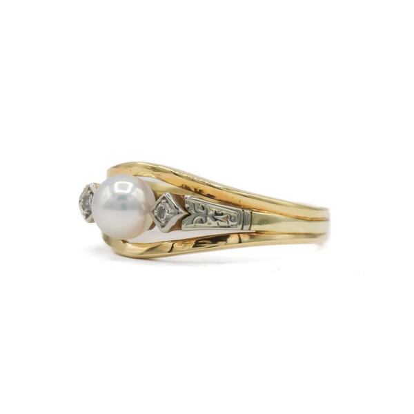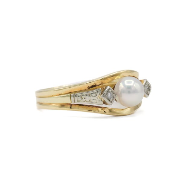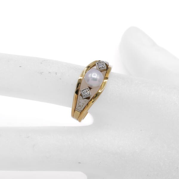 Ring mit Perle und 2 Diamanten in 14 Kt. 585 Gelbgold Gr. 58
