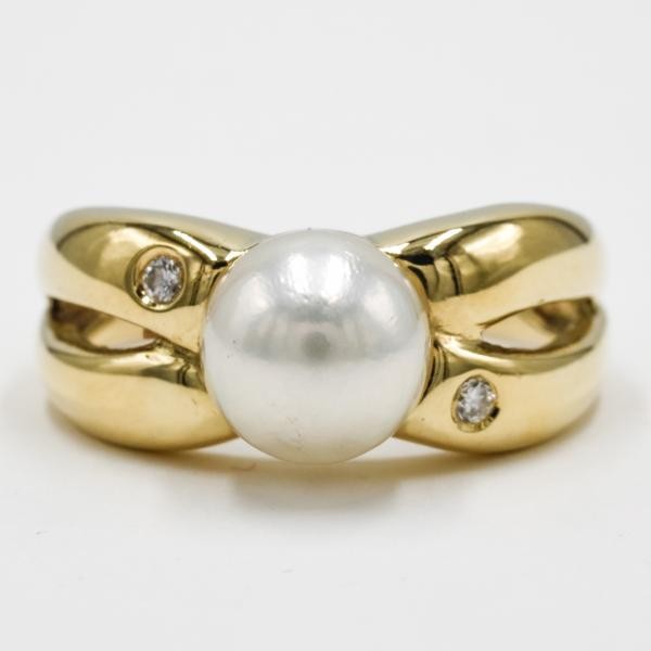 Ring mit Perlen Brillanten Diamanten Perle in 14 Kt. 585 er Gold 57 Edles