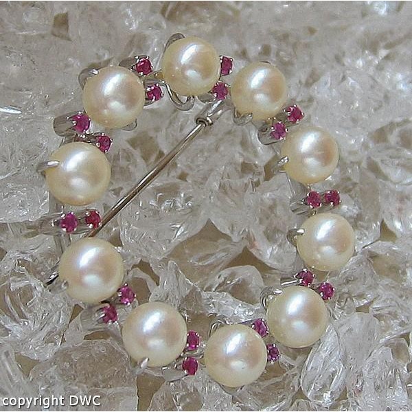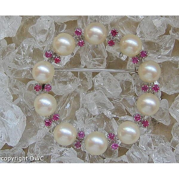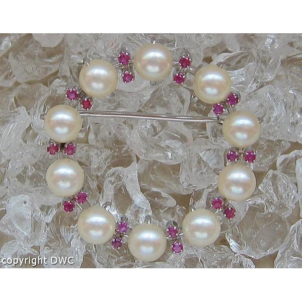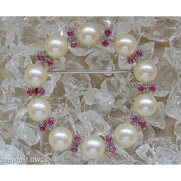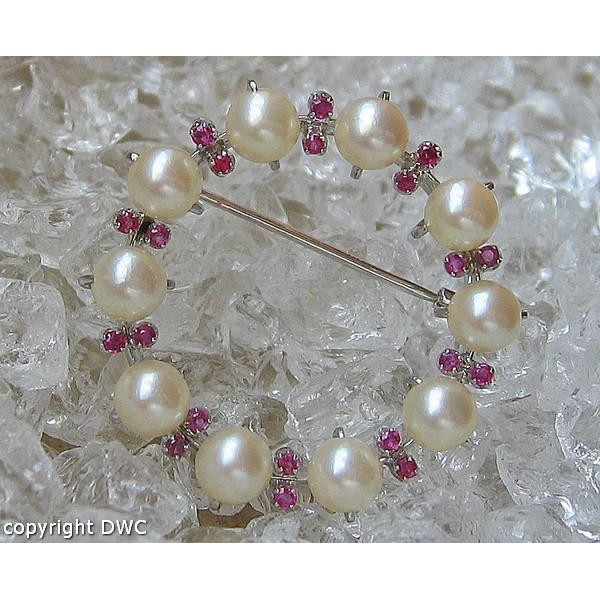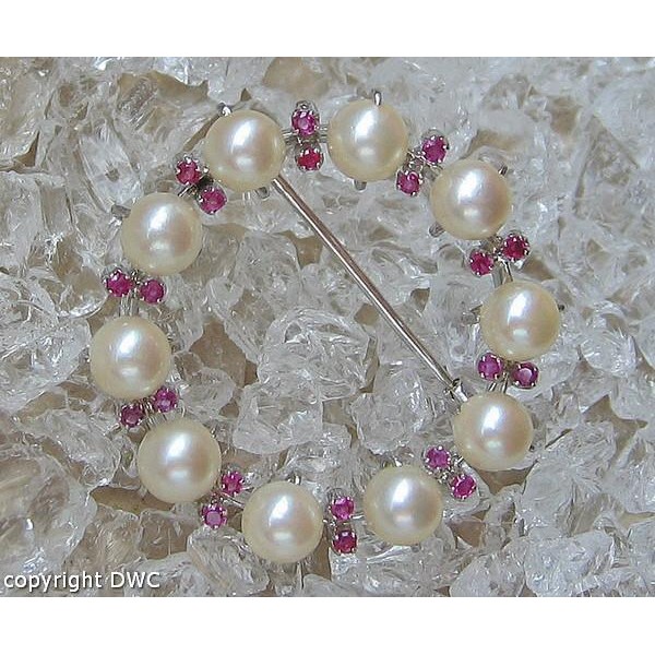 Nadel Brosche mit Perle Perlen Perl Rubin aus in 18 Kt 750 er Gold