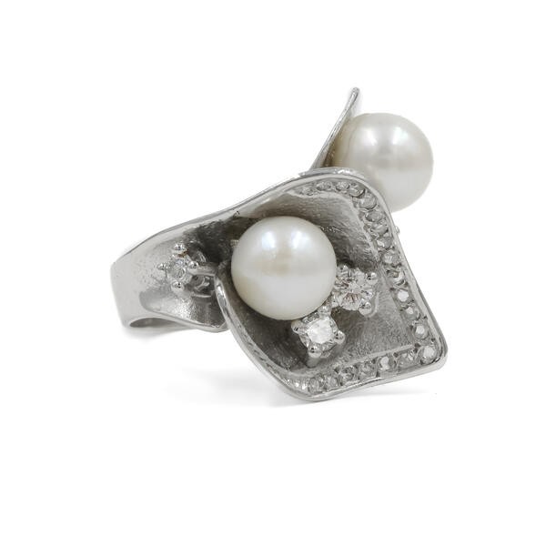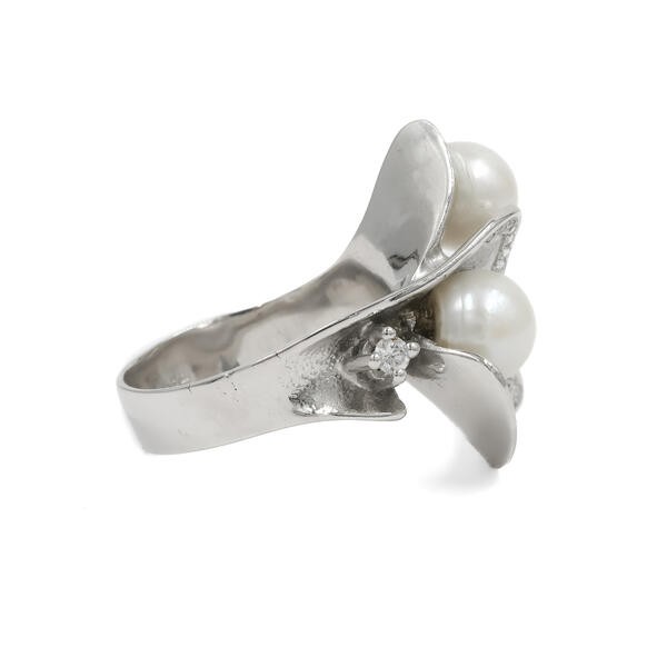 Ring mit Perle Perlen Diamanten Brillanten in aus 14 kt 585 er Gold Unikat