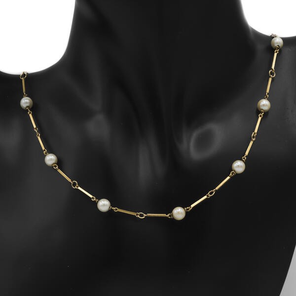 Collier Kette mit Perlen Perl in 750 18 kt Gelbgold Pearl Länge 46 cm