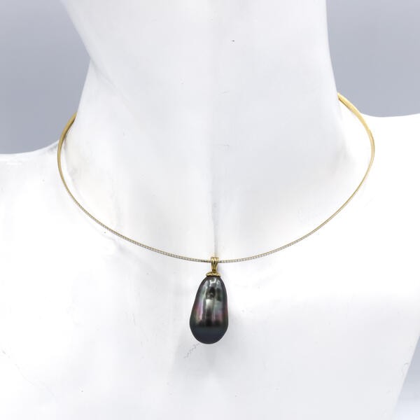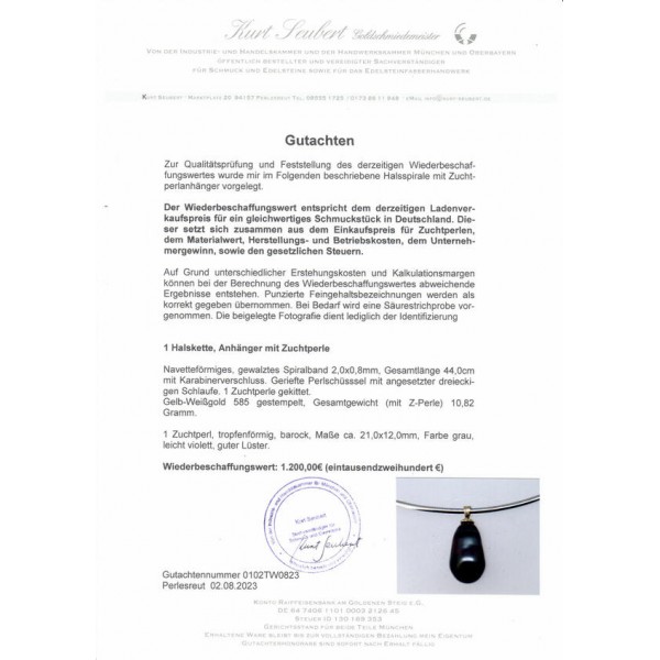 Anhänger mit Zuchtperle an Spiralband in 14 Kt 585 Gold 44 cm IHK Gutachten