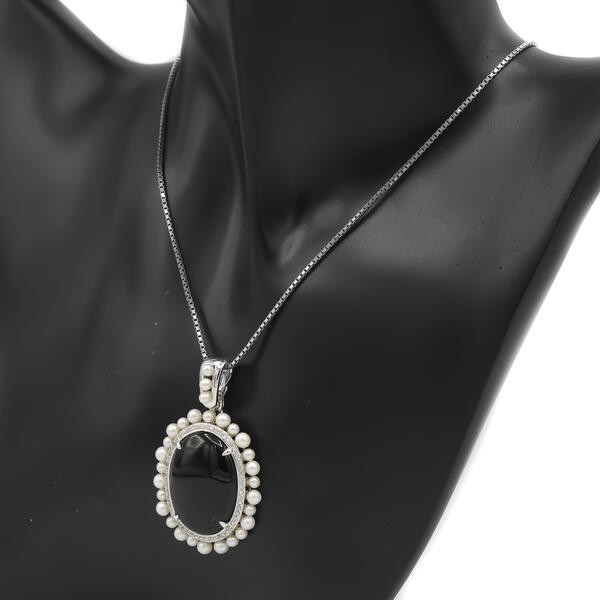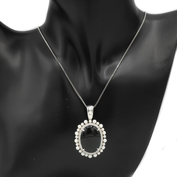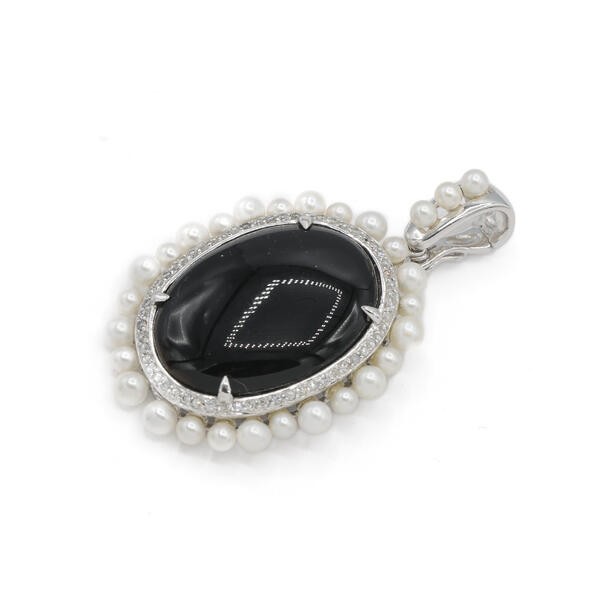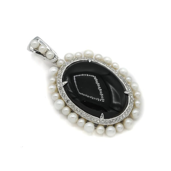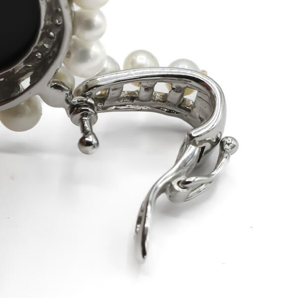 Anhänger Clip mit Onyx Perlen und Diamanten in 18 Kt. 750 Weißgold