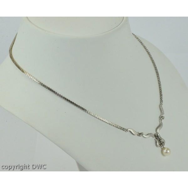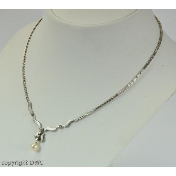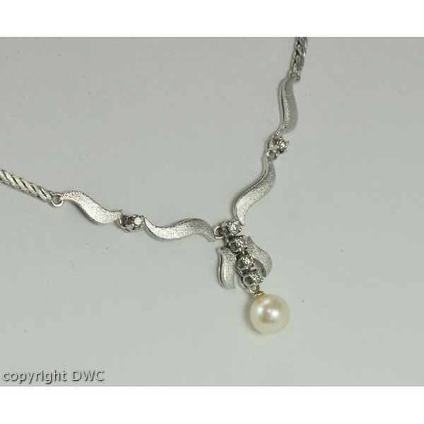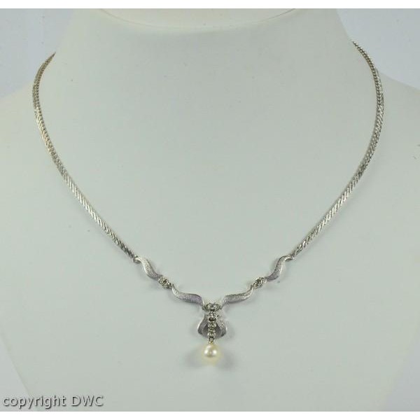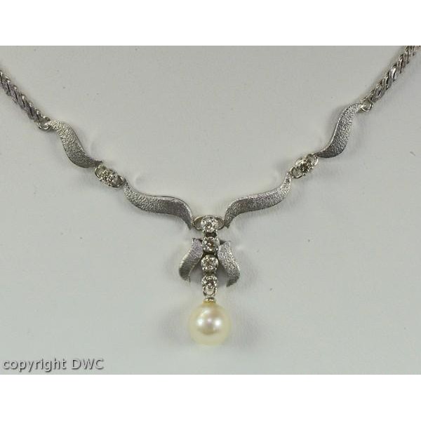 Hals Kette Collier mit Perle Perlen Diamanten Brillant 18 Kt 750 er Weiß Gold
