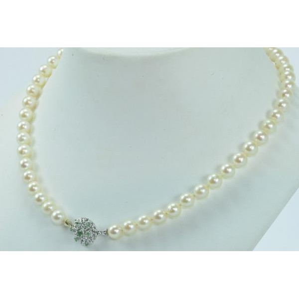 Perlenkette Collier mit Smaragden Perlen in 14 Kt. 585 er Weiß gold 47 cm