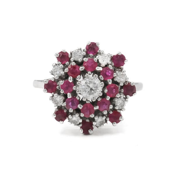 Ring mit Rubinen und 0,60 ct. Brillanten in 14 Kt. 585 Weißgold Gr. 63