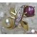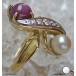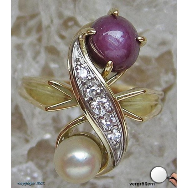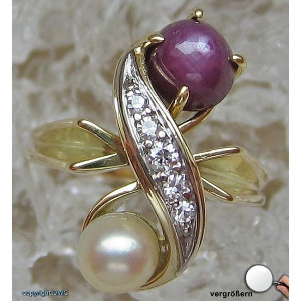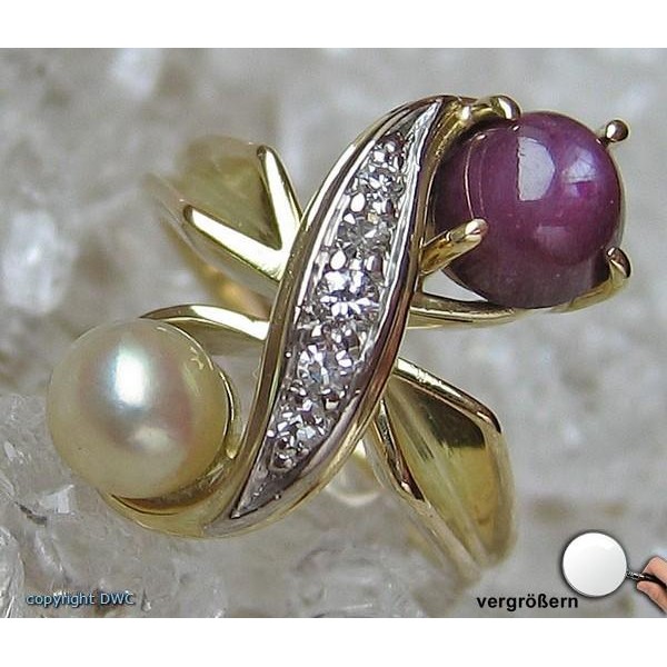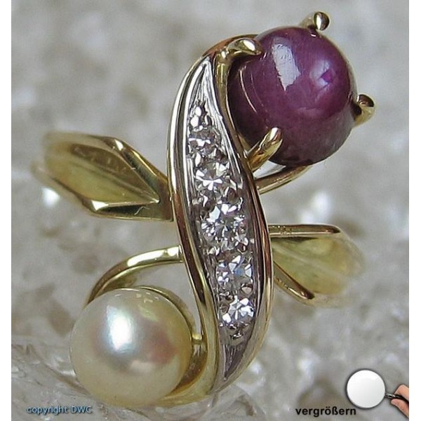 Ring mit Perle Rubin Perlen Rubine Brillant Diamant in 14 Kt. 585 er Gold 54