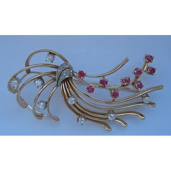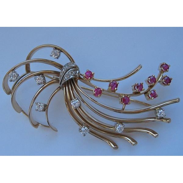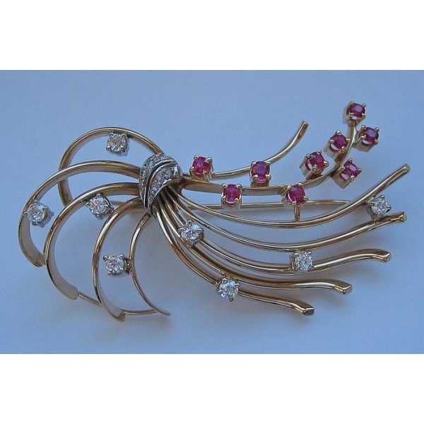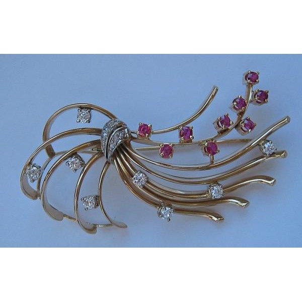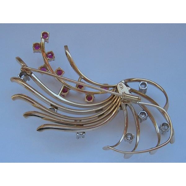 Brosche mit Rubine Diamanten Diamond Brooch 585 14 kt Gold fein
