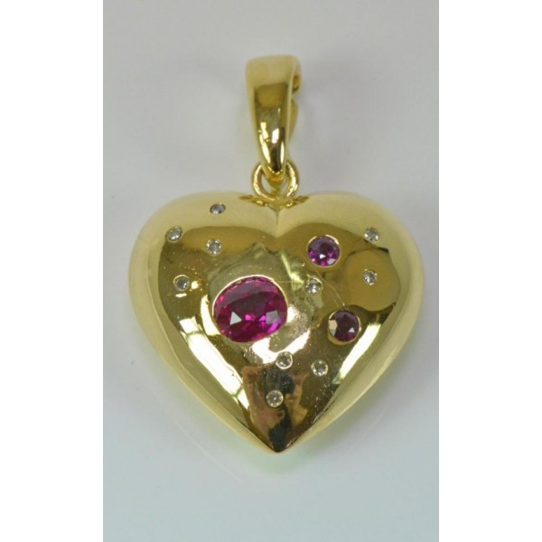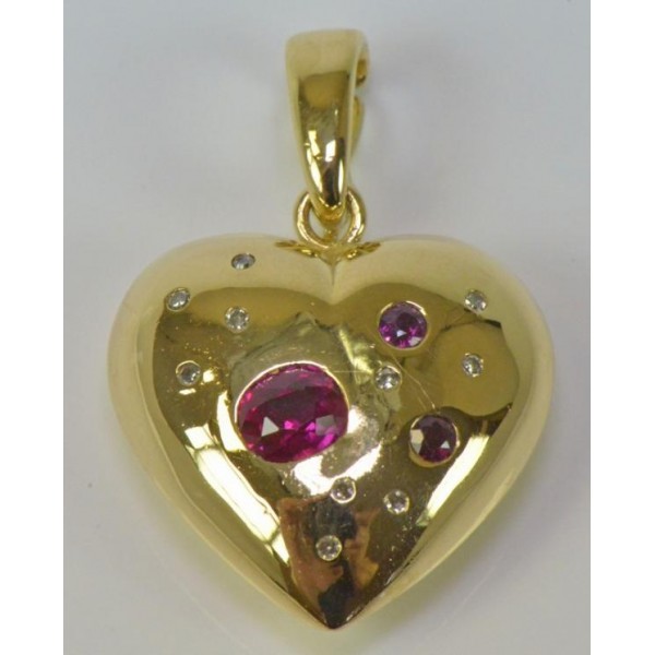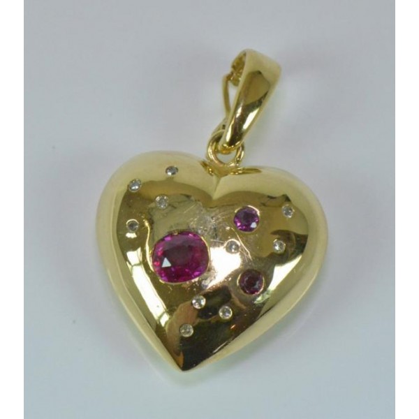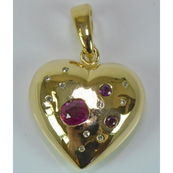 Clip Anhänger Herz mit Rubine Brillanten 18 Kt 750 er Gold Diamanten