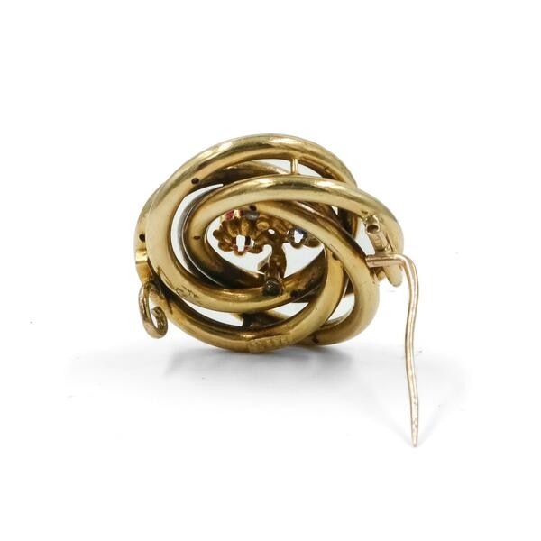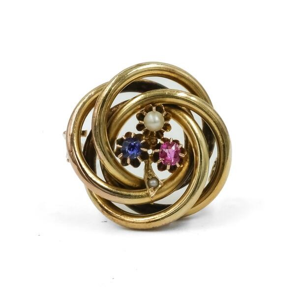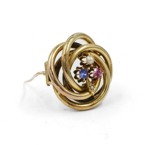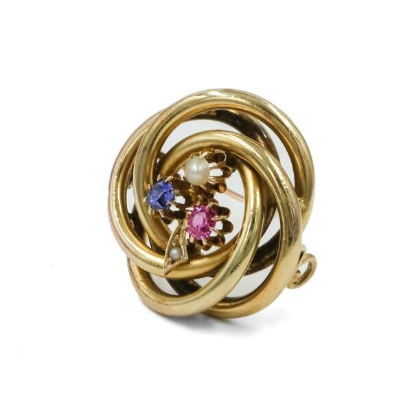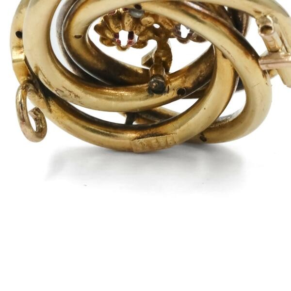Brrosche mit Rubin Saphir und einer Perle in 585 14 kt Gelbgold Nadel Brooch