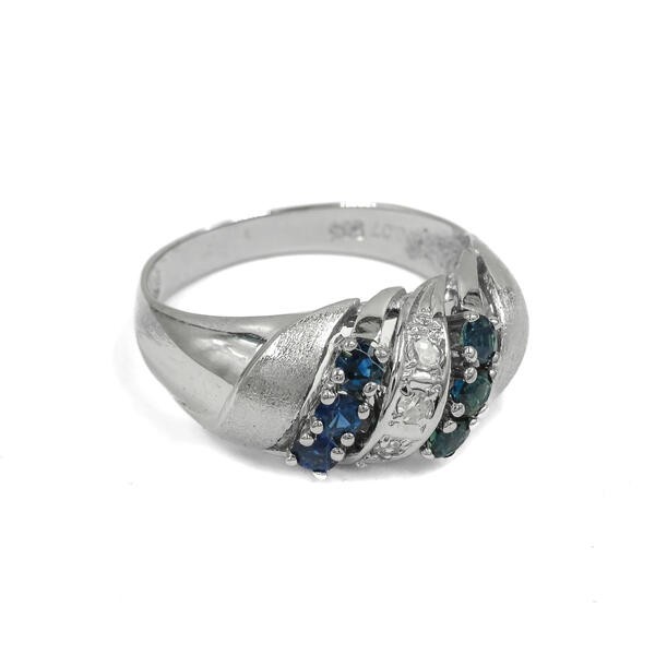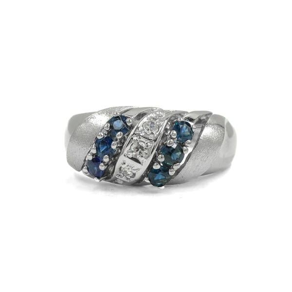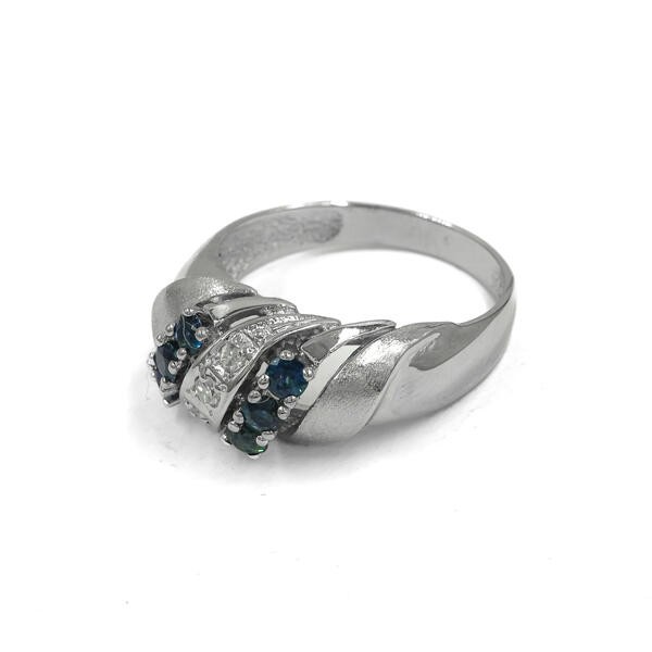 Ring mit 6 Safiren und 3 Diamanten 0,07 ct. in 14 Kt 585 Weiß gold 52.