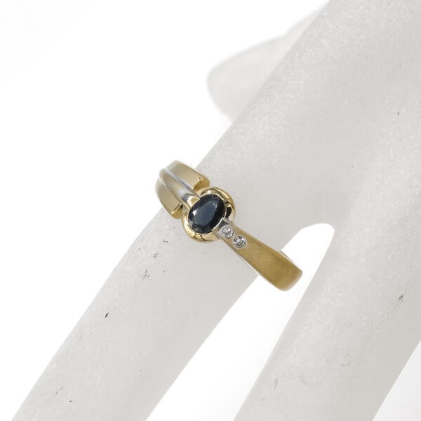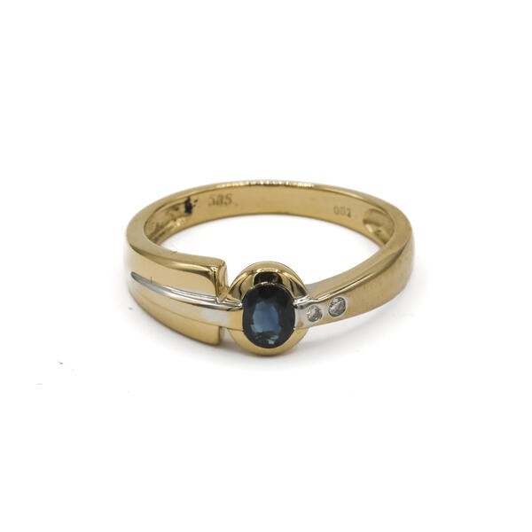 Ring mit Safir und 2 Brillanten Diamanten 0,02 ct. in 14 Kt. 585 Gold Gr. 58