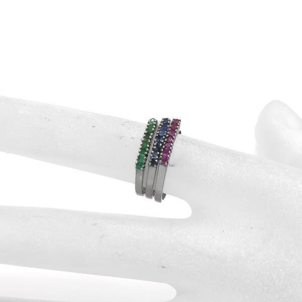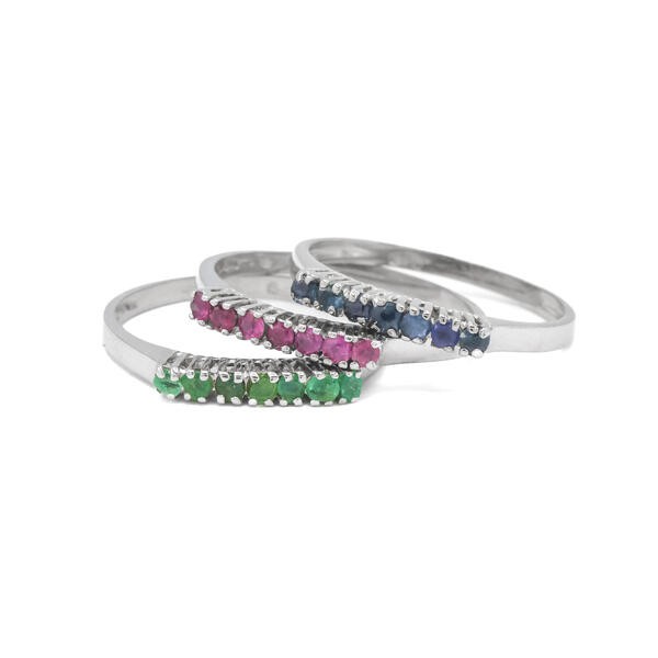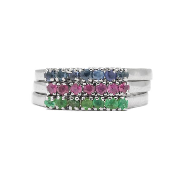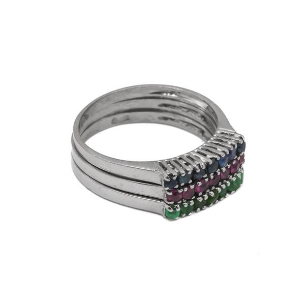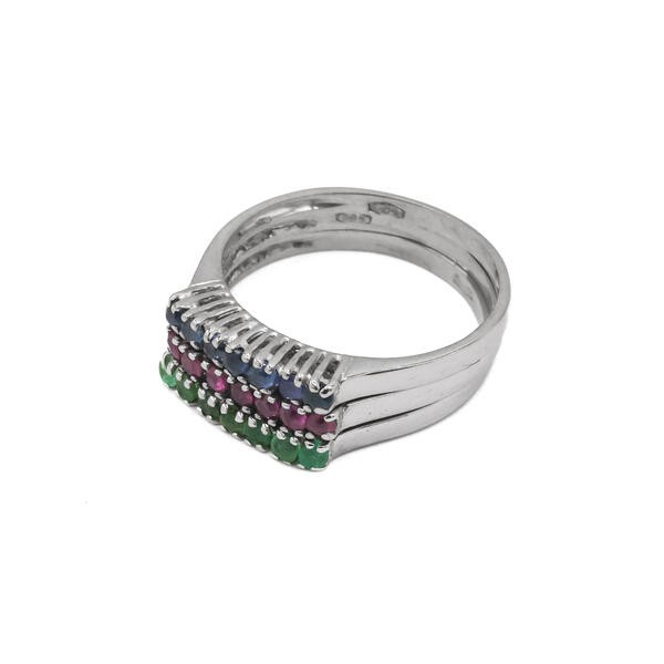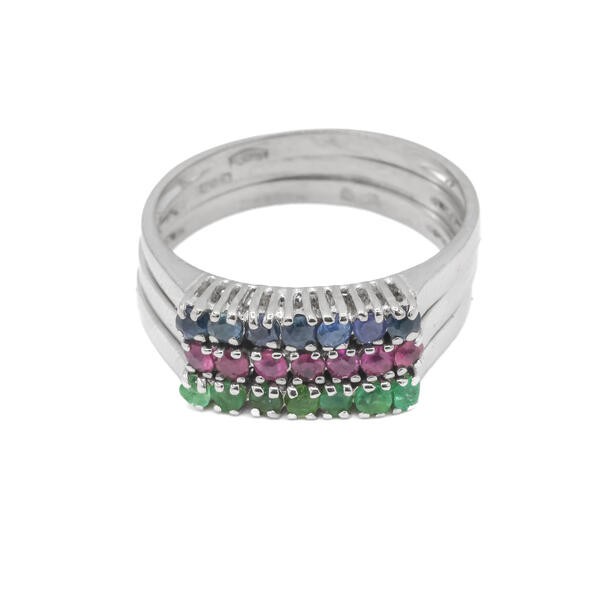3 -fach Ring mit Rubin Safir Smaragd in 14 Kt. 585 Weißgold Gr. 51