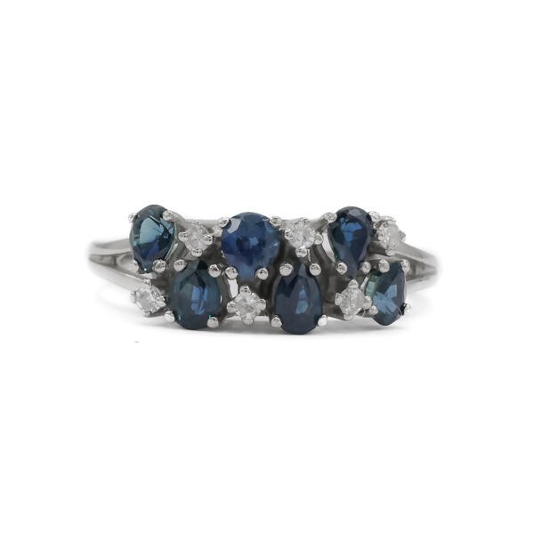 Ring mit 6 Safiren und 6 Diamanten 0,12 ct. in 14 Kt. 585 Weißgold Gr. 58