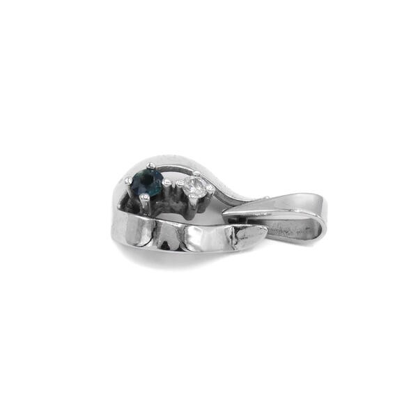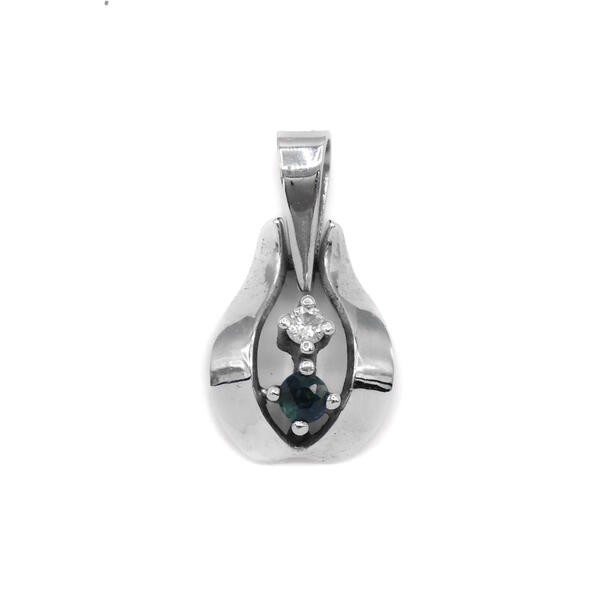 Anhänger mit Saphir Safir und Brillant Diamant in 585 14 kt Weiß Gold Pendant
