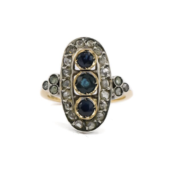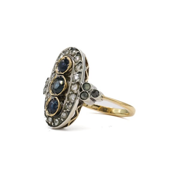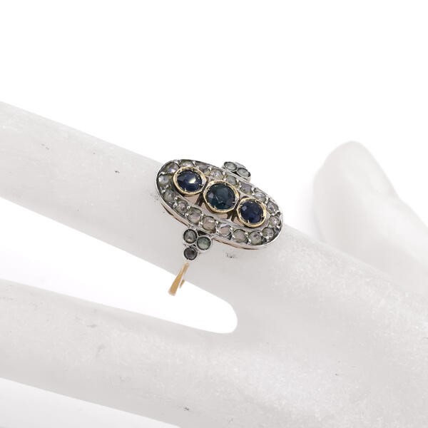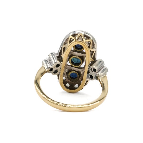 Ring mit Safiten und Diamanten in 18 Kt. 750 Gelbgold antik Gr. 50