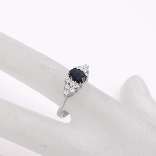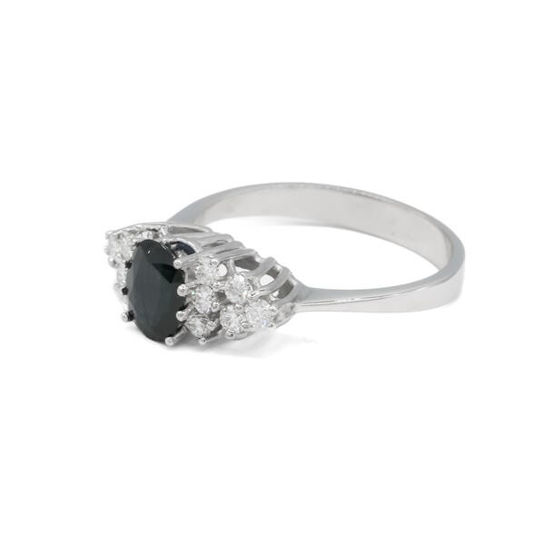 Ring mit Safir und 12 Brillanten Diamanten in 14 Kt. 585 Weißgold Gr. 57