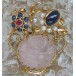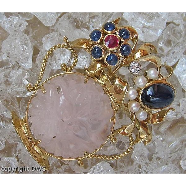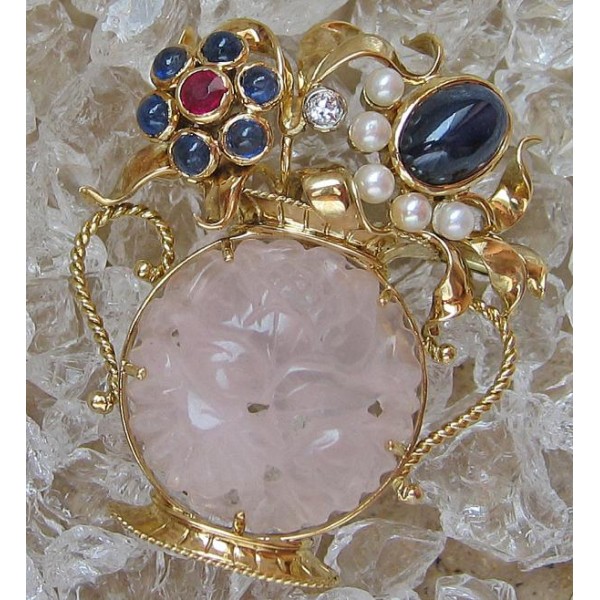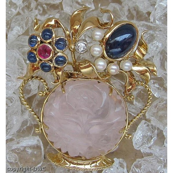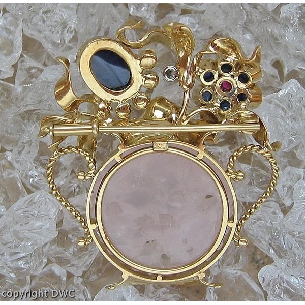 Ansteck Nadel Brosche in 585 Gold Rosenquarz Safir Rubin Diamant top!
