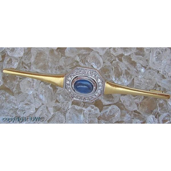 Anstecken Nadel Pin Brosche mit Saphir Safire Diamant 18 Kt 750 Gold Brillant