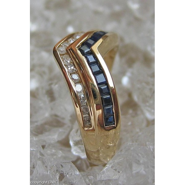 Ring mit Safir Safiren Saphir Brillant Diamant in aus 14 Kt 585 er Gold 52 fein