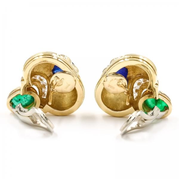 Ohrringe Ohrclips mit Saphir Smaragd Brillanten 0,50 ct 18 Kt 750 Gold