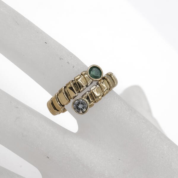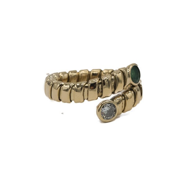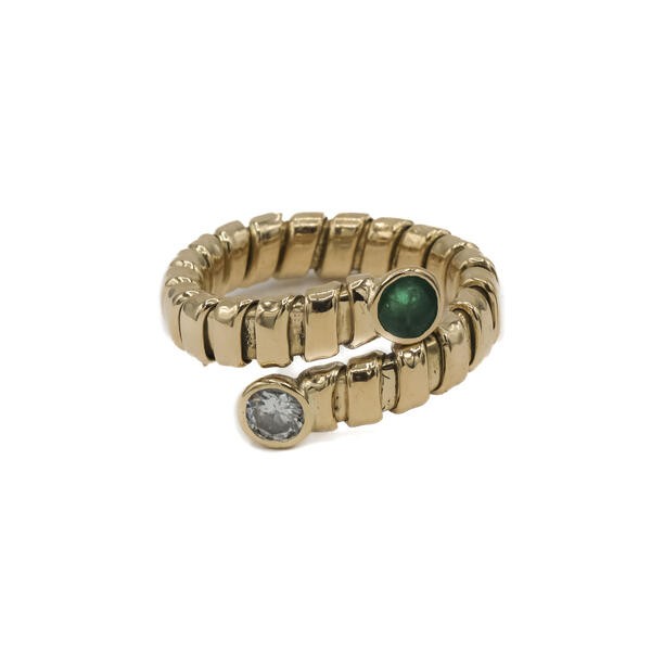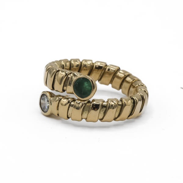 Ring Schlangenring mit Smaragd und Brillant in 18 Kt. 750 Gold Gr. 53