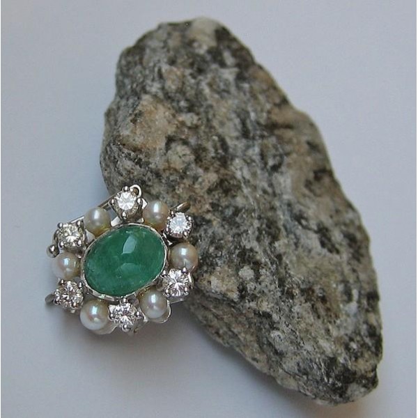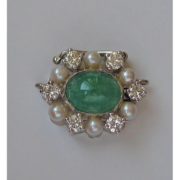 Perlenketten Schliesse Verschluss mit Brillanten Smaragd Perlen 18 Kt 750 Gold