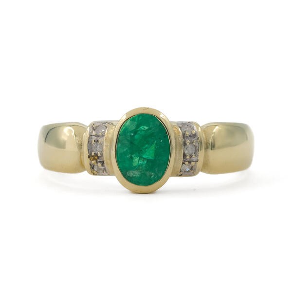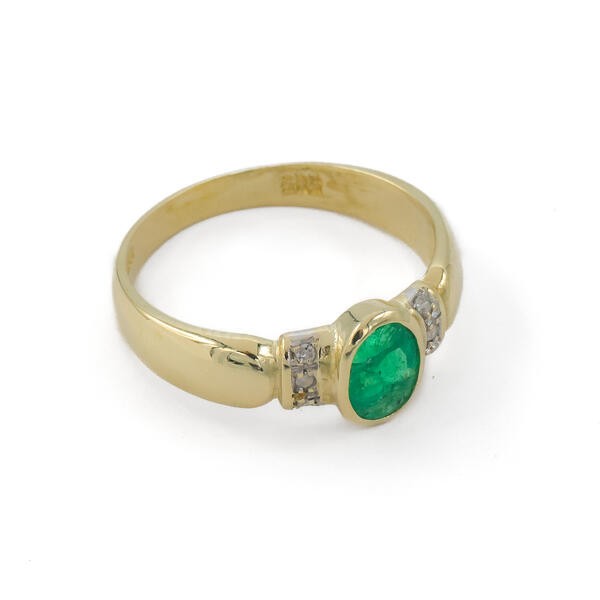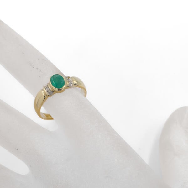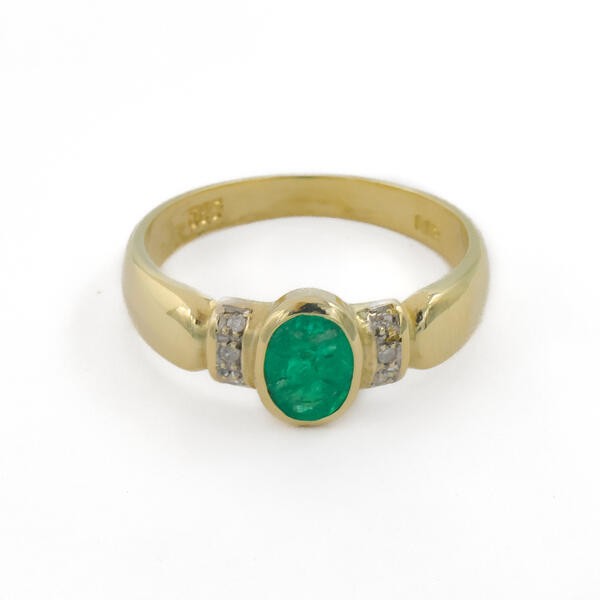 Ring mit Smaragd und 6 Diamanten in 14 Kt. 585 Gelbgold Gr. 56