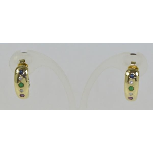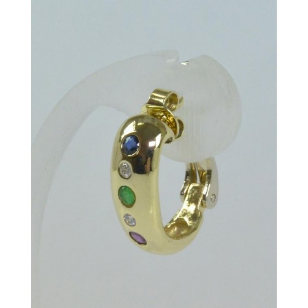 Ohrringe Ohrclips mit Safir Rubin Smaragd Brillanten 14 Kt. 585 Gold