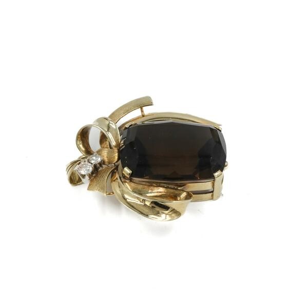 Anhänger mit Rauchtopas Rauchquarz und Brillanten 0,20 ct in 14 Kt 585 Gold