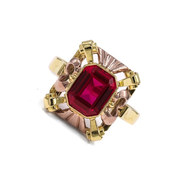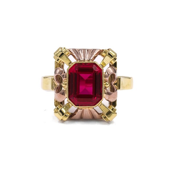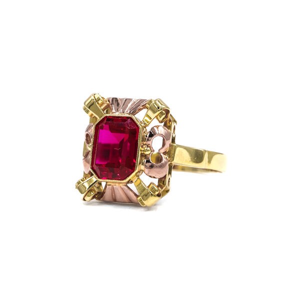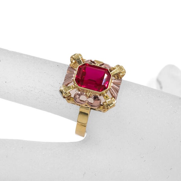 Ring mit rotem Spinell Stein in 14 Kt. 585 Gelbgold Finger Gr. 58