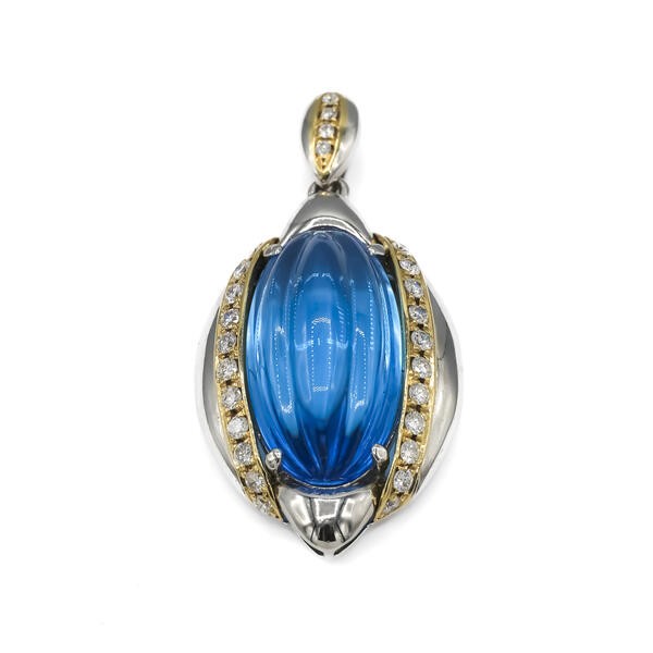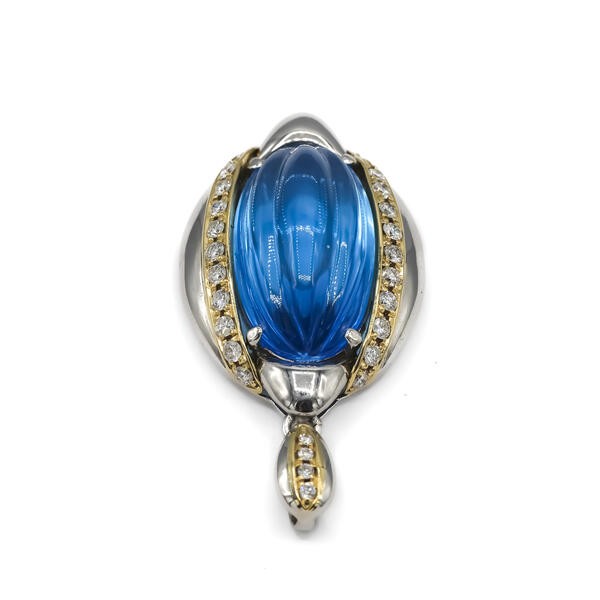 Anhänger mit Blautopas und 28 Brillanten 0,80 ct. in 900 Platin und 750 Gold