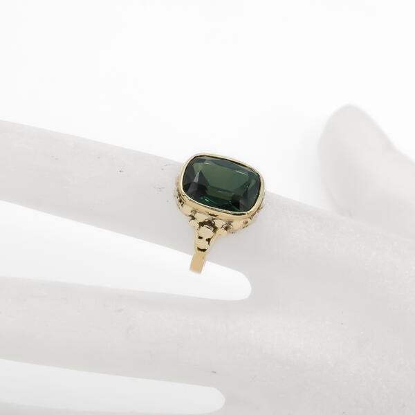 Ring mit Turmalin tourmailne in 8 Kt. 333 Gelbgold Sammlerstück antik Gr. 50