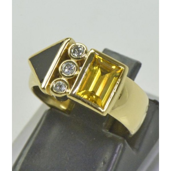 Ring mit Citrin Brillanten Diamanten Onyx aus in 750 er 18 kt Gold 46 Edel!