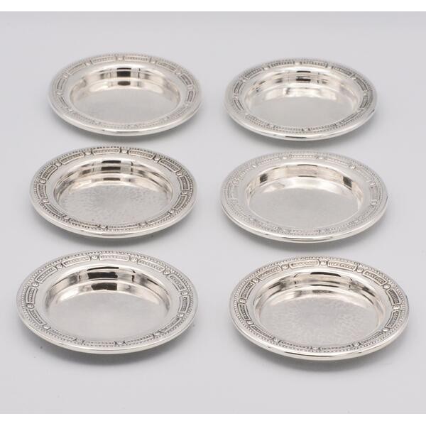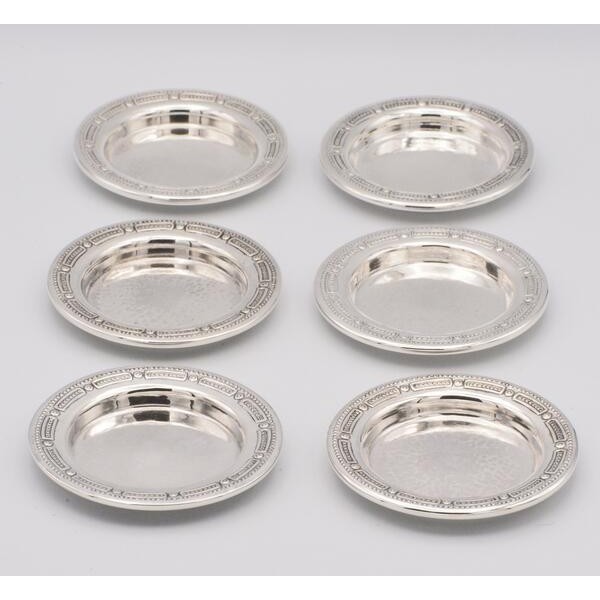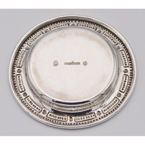 6 Glasuntersetzer Schälchen Kopenhagen HEIMBÜRGER 1929 in 830er Silber 9,8 cm Ø