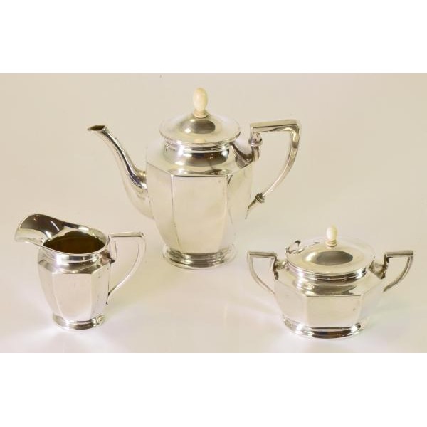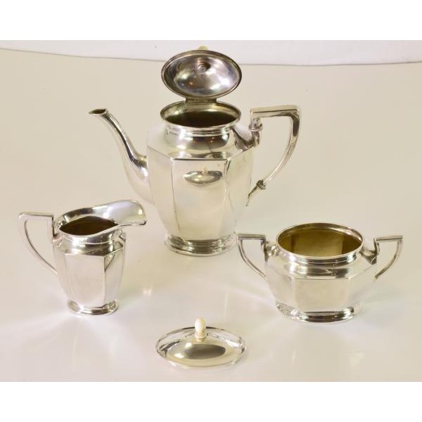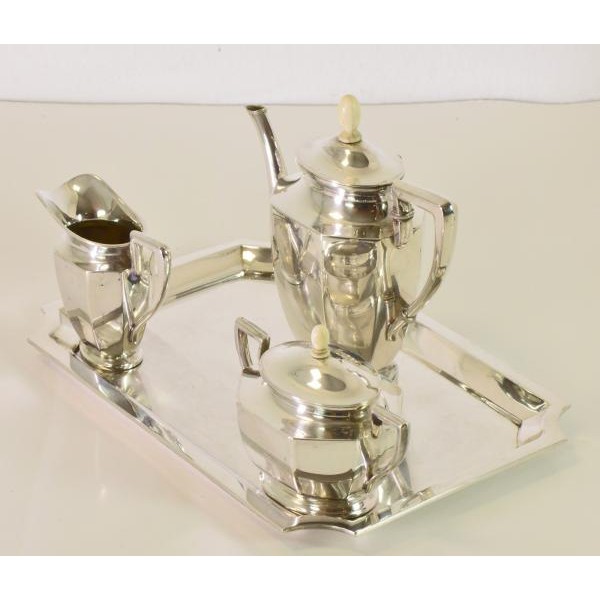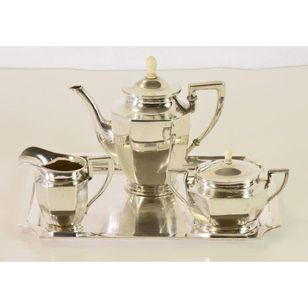 Silberservice Moccaservice mit Tablett in 835 Silber WTB RESSING antik silver .