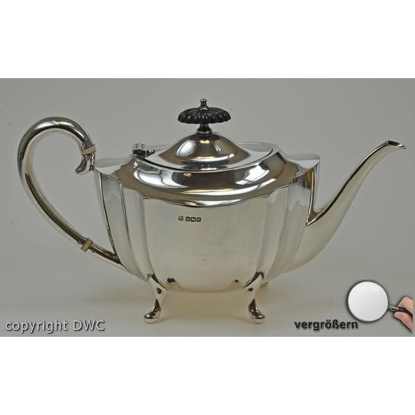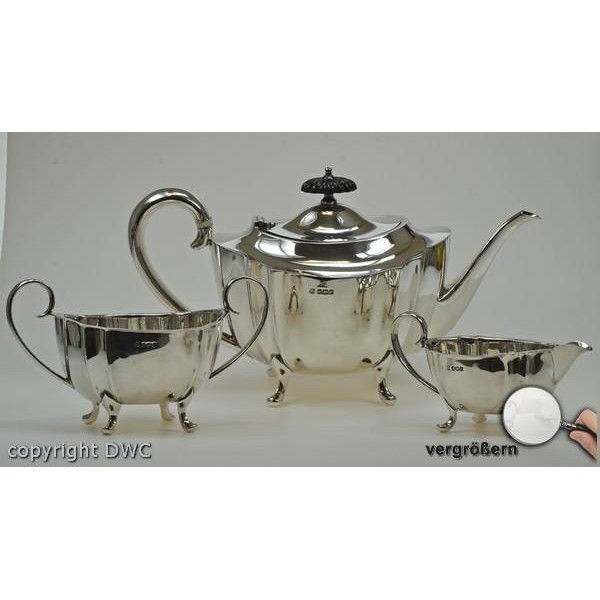 • Maße: TEEKANNE: HÖHE: 15 CM, LÄNGE MIT GRIFF UND AUSGIESSER: 28 CM, BREITE: 13 CM, ZUCKERDOSE: LÄNGE: 17 CM BREITE: 10 CM, HÖHE: 9,5 CM, MILCHKÄNNCHEN: LÄNGE: 14 CM, BREITE 8 CM HÖHE: 7 CM, SILBERSCHMIEDE HANDARBEIT ELEGANTES DESIGN ALLES MIT FÜßCHENKNAUF AUS EBENHOLZ ENGLAND