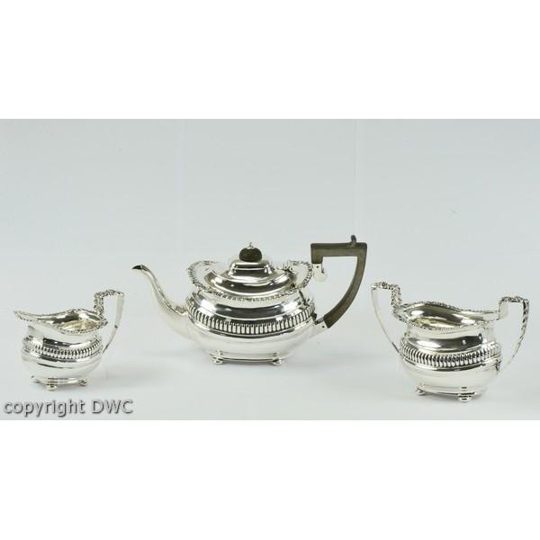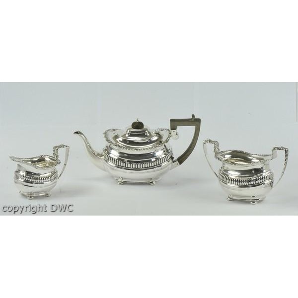 Tee Service Art Deco England Chester Antik aus 925 er Silber Kanne Zucker