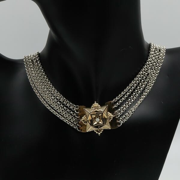 Sechsreihige Kropfkette in 800 Silber Siver mit Perle für die Tracht Dirndl