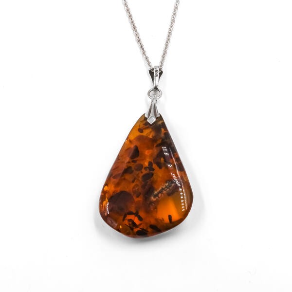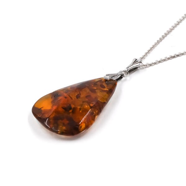 Kette mit Anhänger Bernstein Collier aus 835er Silber mit Wachstumsfasern